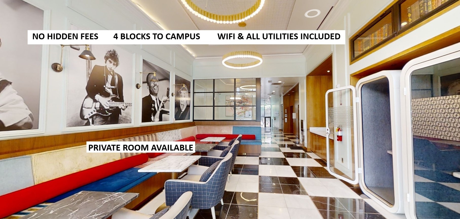 Schedule a tour to view our assortment of floor plans, ensuring a unit that can meet your needs. Each apartment thoughtfully features: brand new, custom designer furniture, biweekly kitchen-living-bathroom cleaning, in-unit laundry, free Wi-Fi, smart tv, high ceilings, large windows, contemporary high end gold finishes, wood floors, detached ensuite bathroom, marble countertops, stainless steel energy star appliances, operable windows, wood window treatments, keyless entry Ask us about our group pricing and move in specials! .